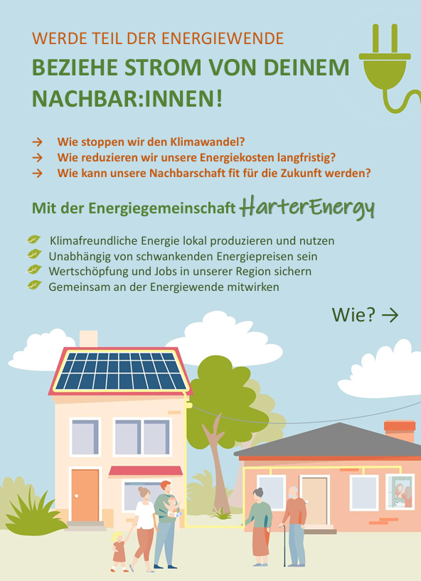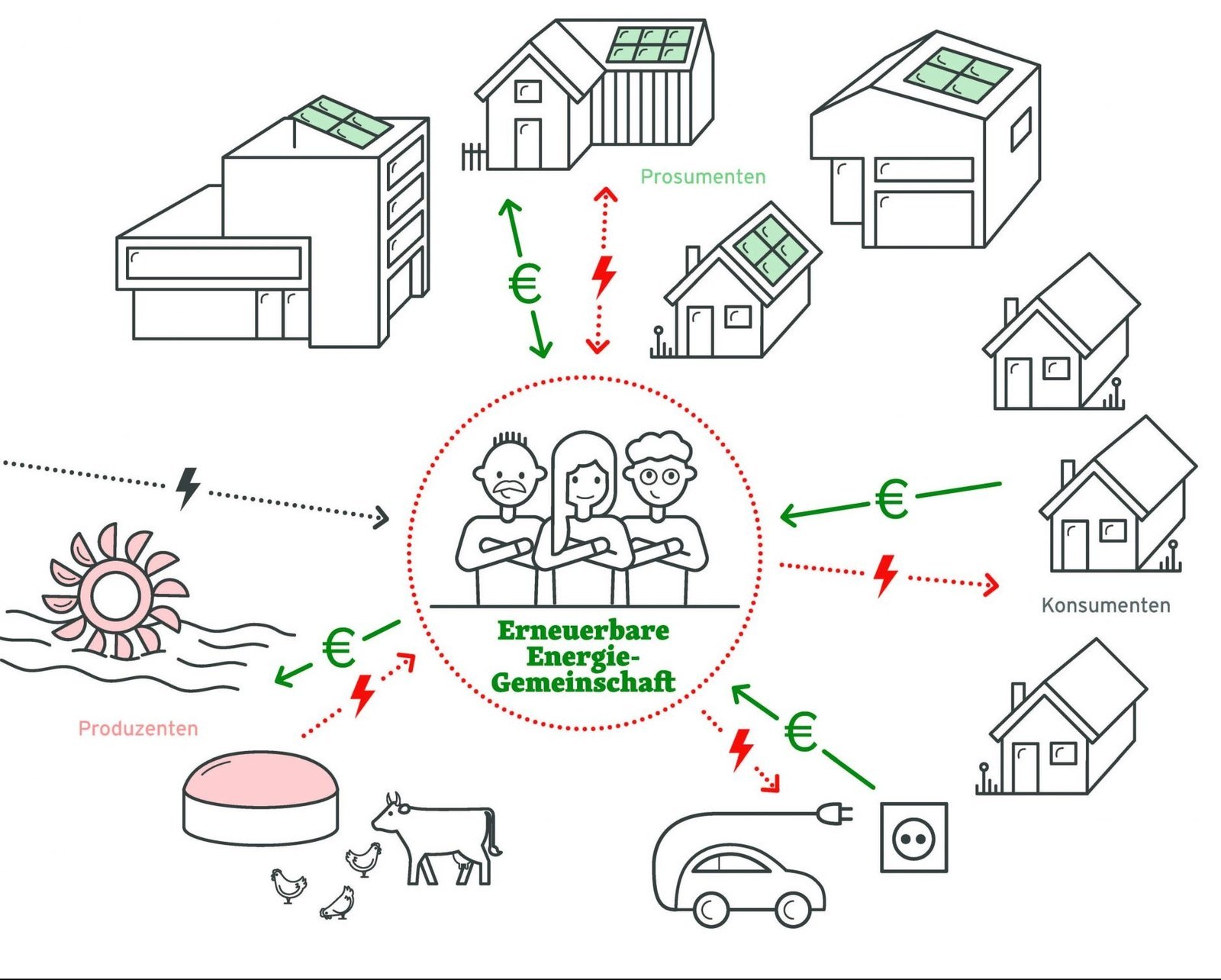 Energiegemeinschaften sind ein Teil der Zukunft! Erstmals können wir Energie über Grundstücksgrenzen hinweg gemeinschaftlich produzieren, speichern, verbrauchen oder verkaufen. Wir nutzen die Vorteile von erneuerbaren Energiequellen gemeinschaftlich! Wir sichern gemeinsam eine nachhaltige Energieversorgung für alle.